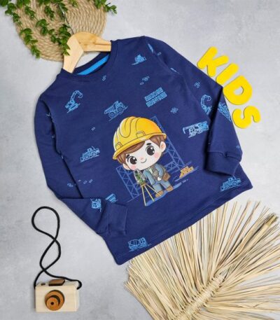 رنگ بلوز سرمه ای، آبی جنس بلوز دورس لاکرا پنبه یه کار پاییزه پسرانه”طرح مهندس کوچولو” پک ۶ تایی سایز
