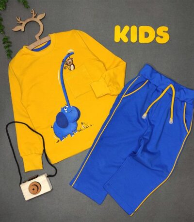 ست بلوز شلوار پسرانه طرح فیل و میمون | بچگانه