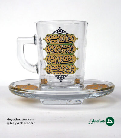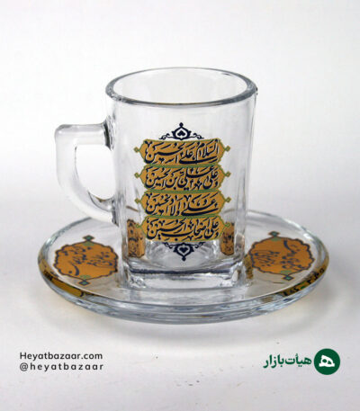 استکان کمر باریک دسته دار و نعلبکی طرح یا اباعبدالله الحسین بسته ۶ عددی